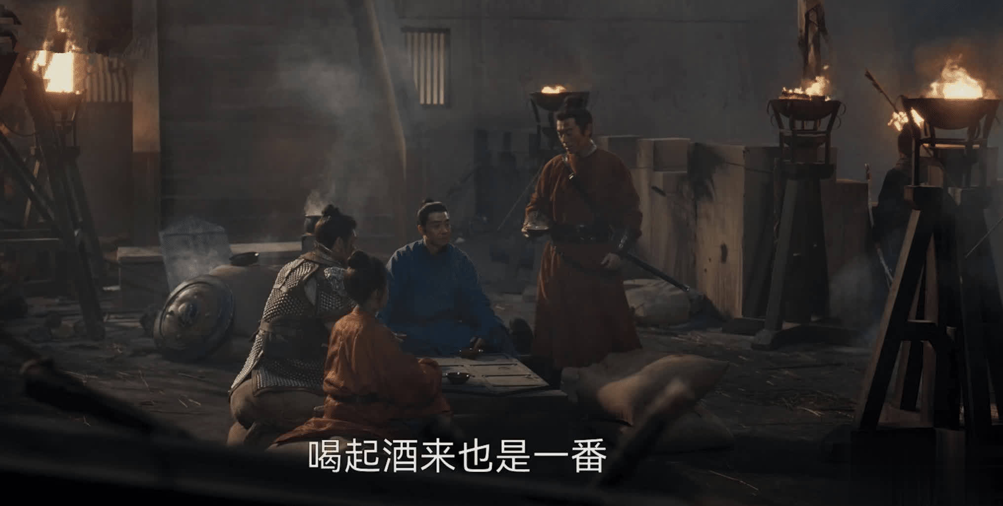 那是在后晋灭亡前夕,钱弘俶、赵匡胤、郭荣当时还是少年郎,他们一起守护汴梁,抵抗已经投降契丹的张彦泽率领的大军。临近第十日时,他们在城墙上喝酒,期间郭荣说起自己父亲郭威的愿望,说郭威对能否拜旌节并没那么在乎,“高官厚禄无足论,若能喝上太平年下的一杯热酒,于愿足矣。”而这个愿望也是守城三兄弟的愿望。